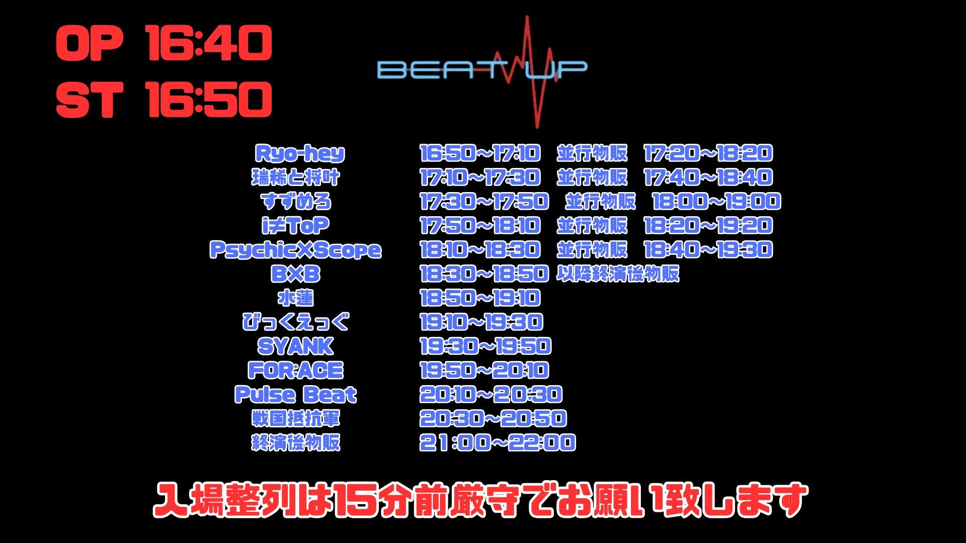 OPEN 16:40 / START 16:50
