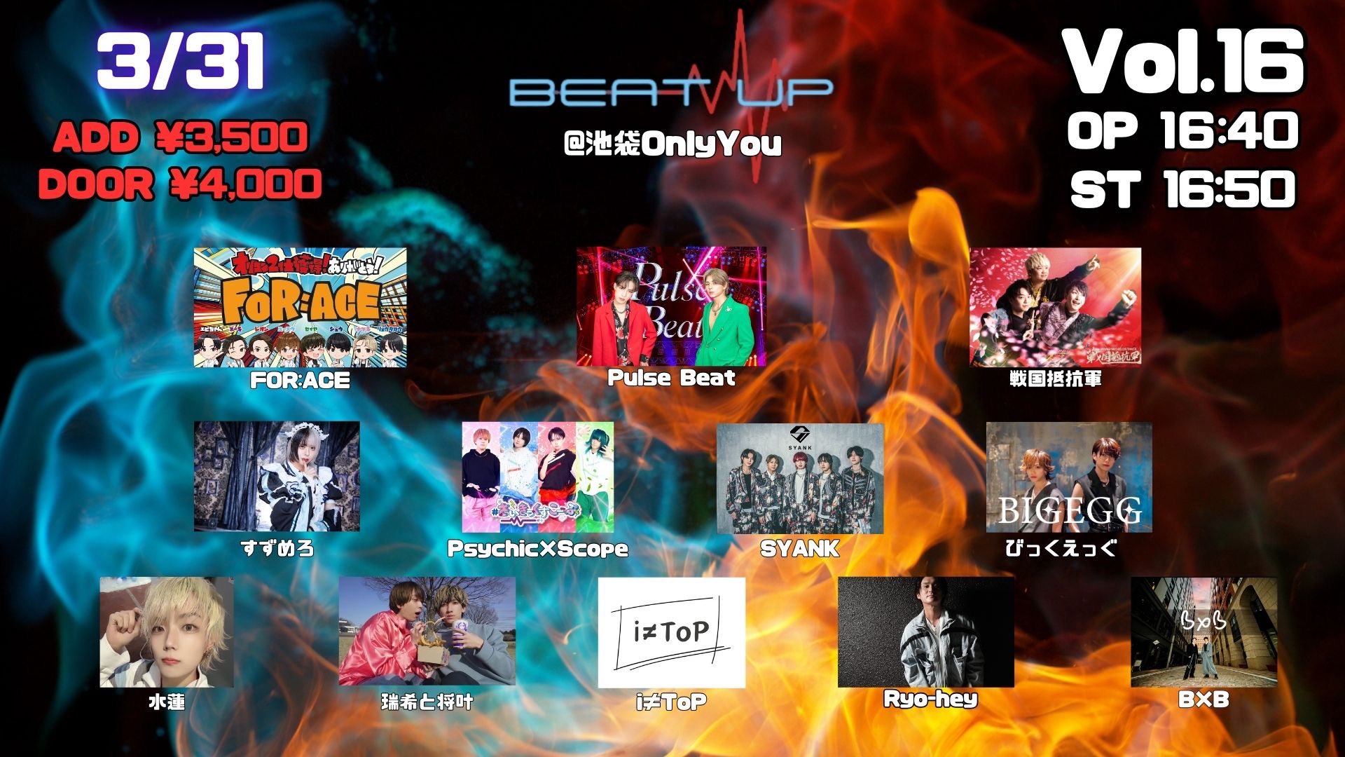 OPEN 16:40 / START 16:50 前売3,500円/当日4,000円(+1D別)