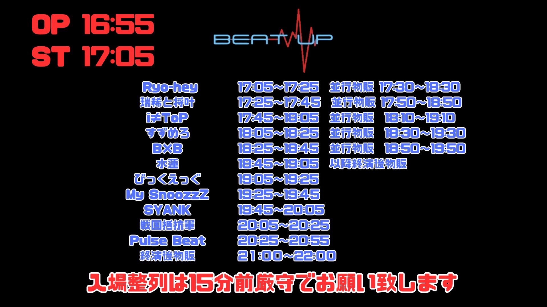OPEN 16:55 / START 17:05