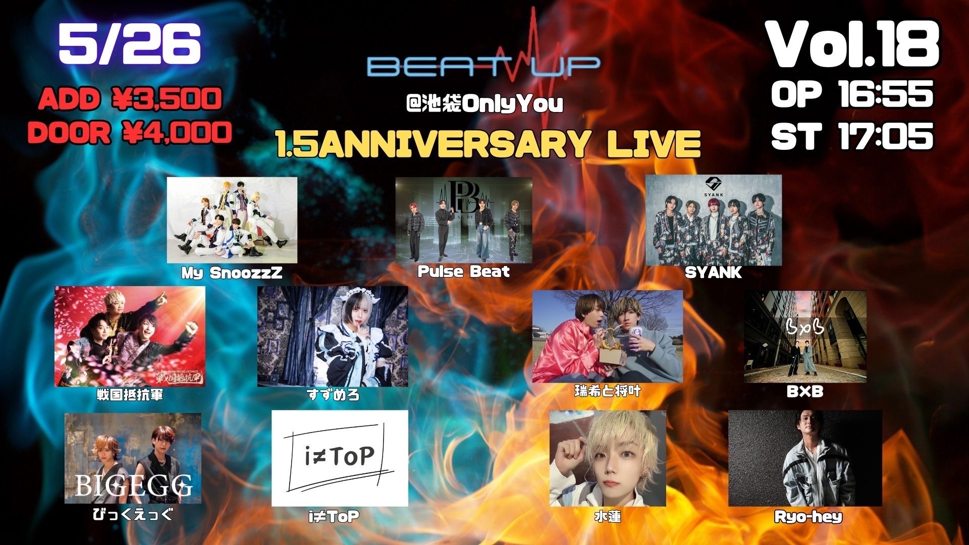 OPEN 16:55 / START 17:05 前売3,500円/当日4,000円(+1D別)