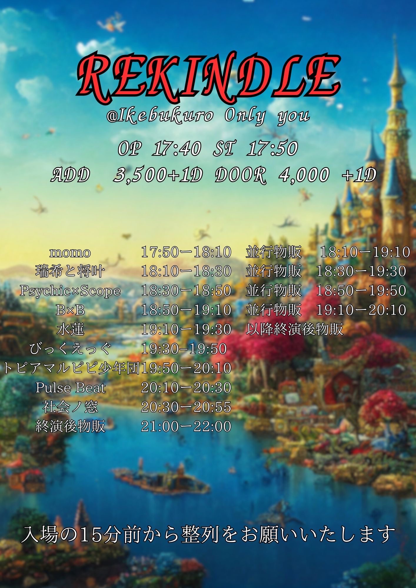 OPEN 17:40 / START 17:50 前売3,500円/当日4,000円(+1D別)