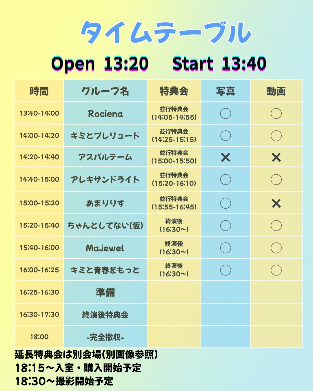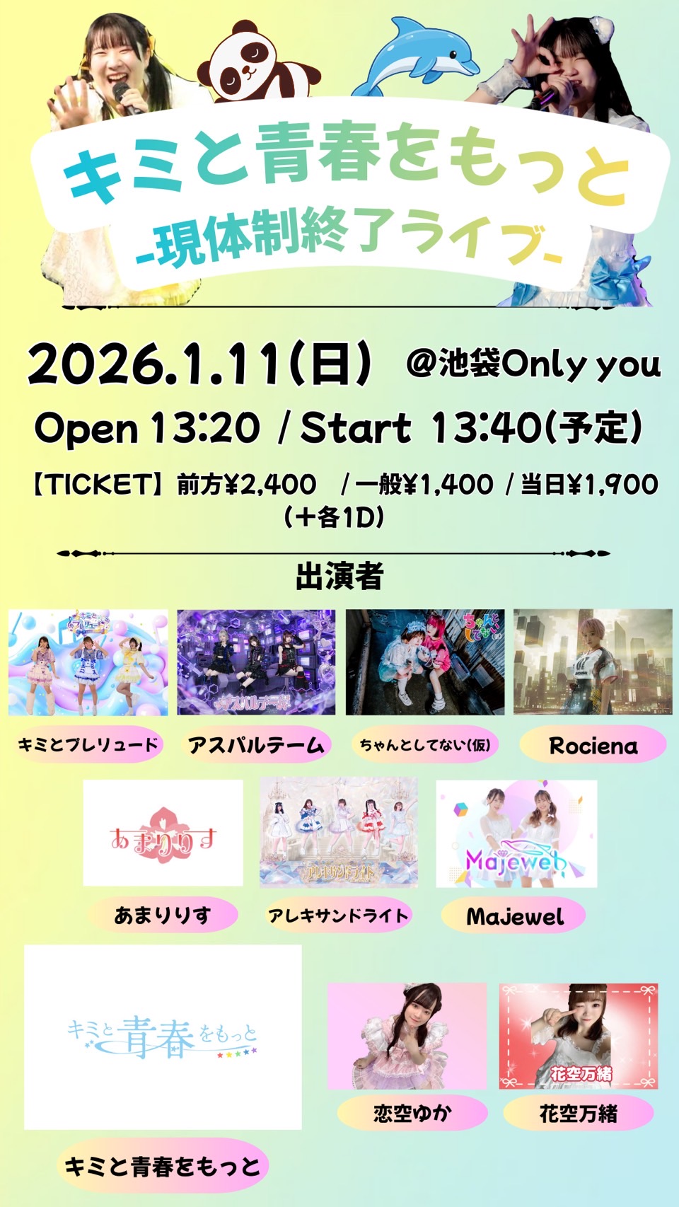OPEN 13:20 / START 13:40 前方2,400円/一般1,400円/当日1,900円 1ドリンク 600円 ポップス / アイドル / ロック