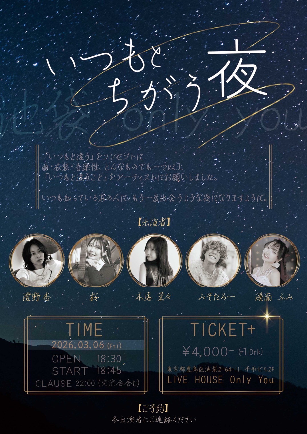OPEN 18:30 / START 18:45 4,000円 1ドリンク 599円