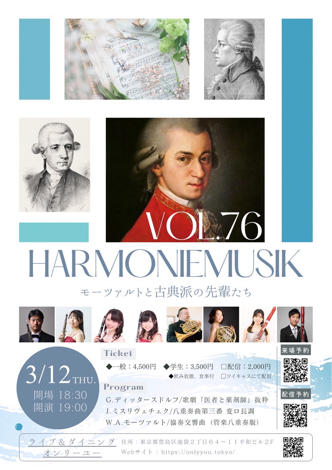 OPEN 18:30 / START 19:00 一般4,500円/学生3,500円(飲み放題・食事付)/配信2,000円